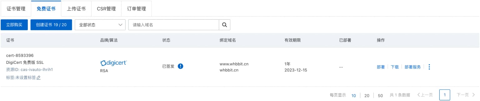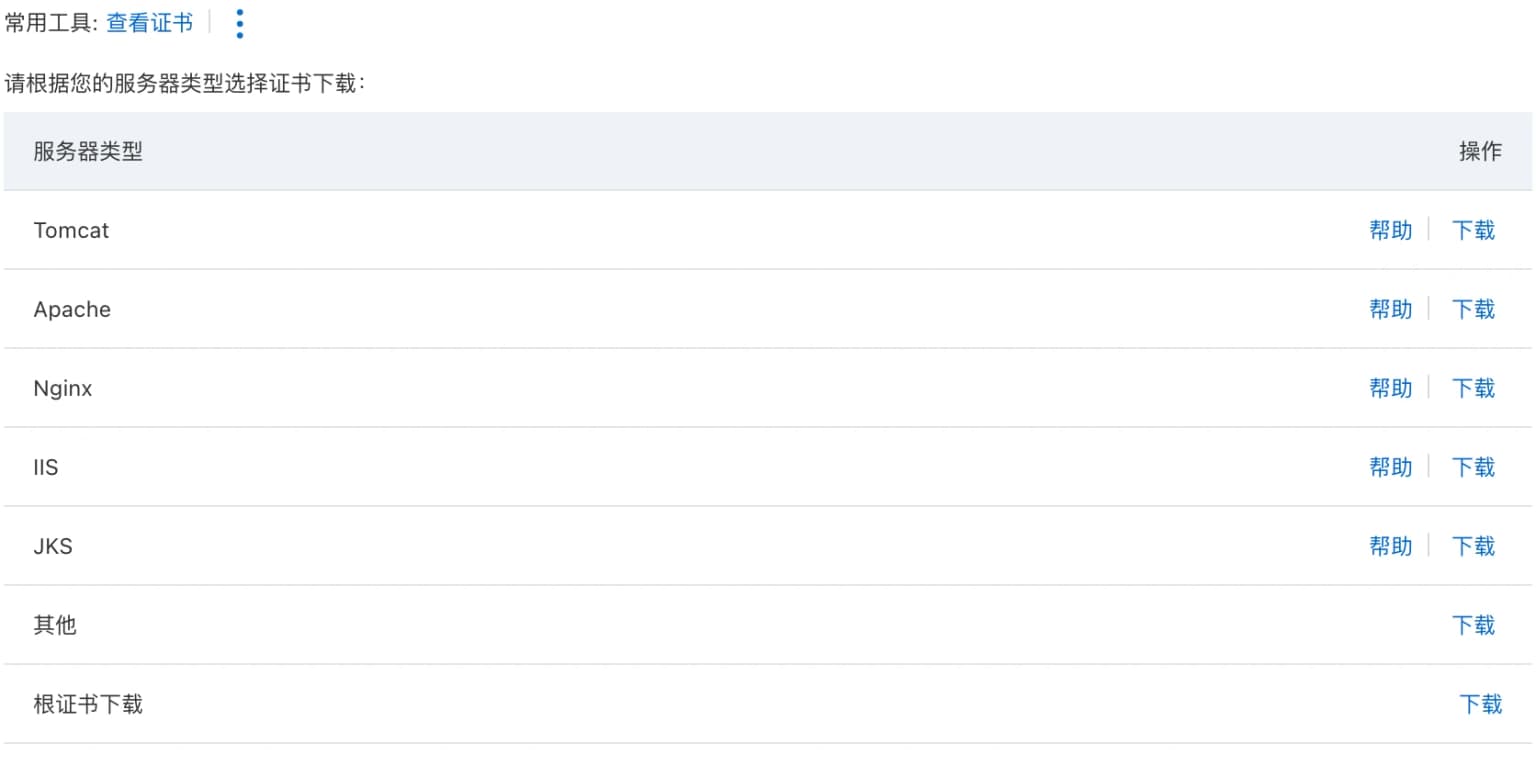 成功后,点击下载对应服务的 ssl 证书文件。