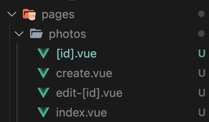 [id].vue页面是您可以读取单个照片资源的页面。index.vue页面可以一次列出多张照片,方便用户嵌套查看他们感兴趣的照片。(用户访问/photos/[whatever-the-id-is]) - U -