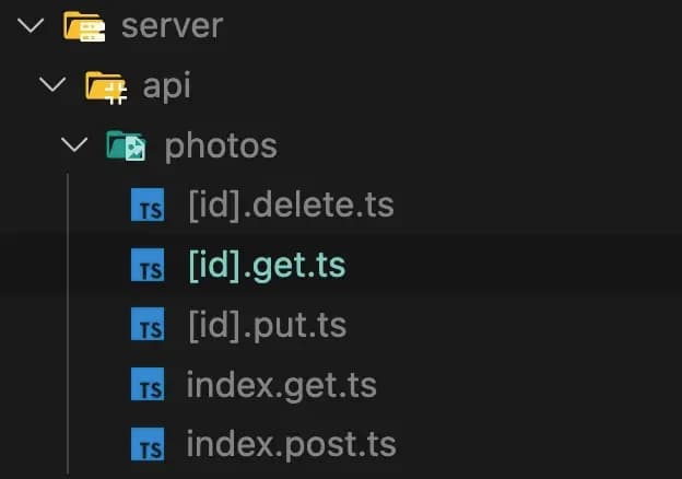 /api/photos/[whatever-the-id-is]的 GET 请求由[id].get.ts处理,并返回该帖子的具体信息。对/api/photosGET 请求也由index.get.ts处理,并返回照片的分页列表。 - U - 对