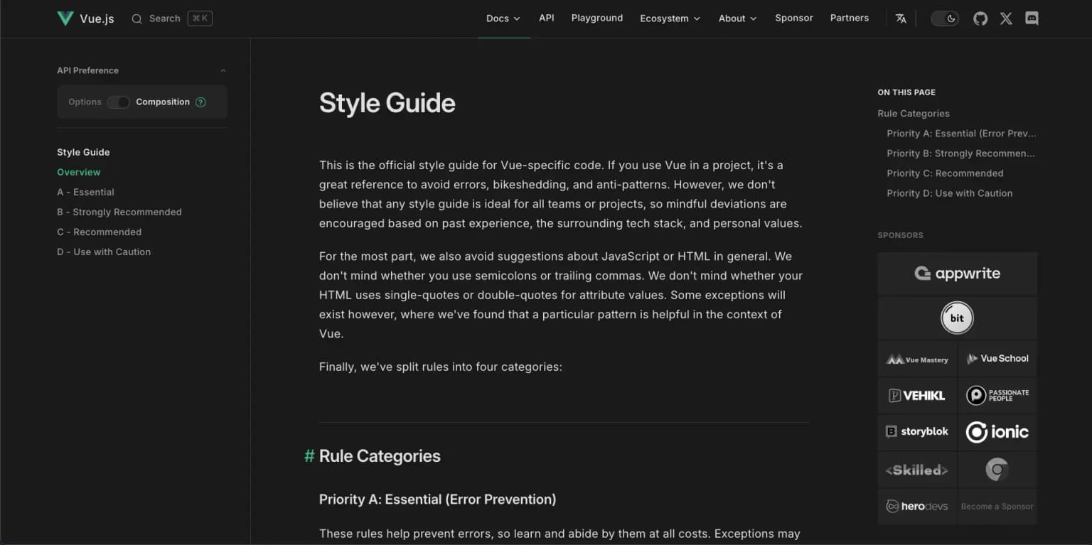 因此这就引出了一个问题,整个 Vue.js 社区存在什么样的标准?我想说有 4 个可用的标准来源。